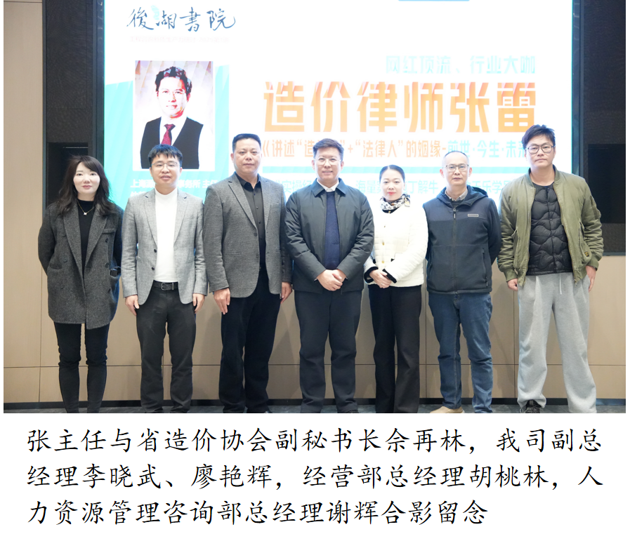 在法治中國建設(shè)與行業(yè)高質(zhì)量發(fā)展的雙輪驅(qū)動下,造價與法律的融合已然成為業(yè)內(nèi)剛需。這不僅體現(xiàn)在具體業(yè)務(wù)層面,更將重塑工程造價的價值定位,使其從傳統(tǒng)咨詢服務(wù)向高質(zhì)量戰(zhàn)略智庫轉(zhuǎn)型。3月9日,上海源勤律師事務(wù)所主任張雷律師蒞臨我司開展專題培訓(xùn),深度解析以法律思維指導(dǎo)造價管理的必要性及其具體應(yīng)用,以期助力從業(yè)人員精準(zhǔn)把握行業(yè)政策動向、提升法律風(fēng)險防控能力。本次講座由永信和瑞與后湖書院主辦,省造價協(xié)會副秘書長佘再林作為嘉賓出席講座。我司副總經(jīng)理李曉武、廖艷輝,經(jīng)營部總經(jīng)理胡桃林,人力資源管理咨詢部總經(jīng)理謝輝帶領(lǐng)造價業(yè)務(wù)板塊全體人員參與交流。